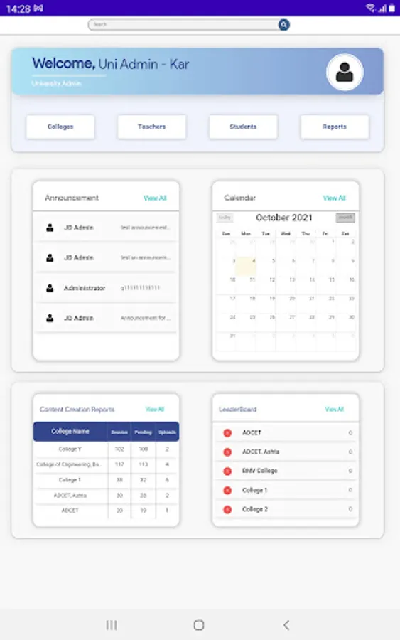 For the benefit of the Faculty, the LMS app also facilitates a date-wise activity list, with the Calendar feature, and a priority-wise list of assigned Sessions.
