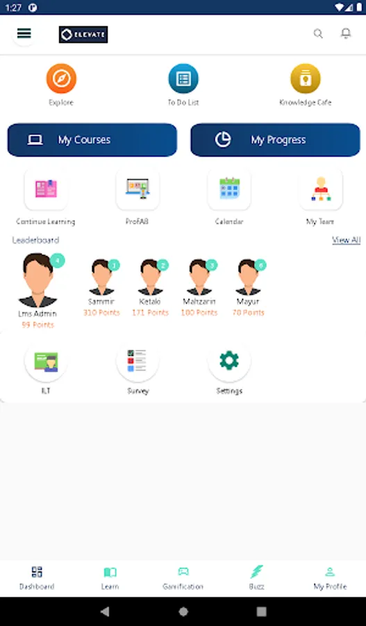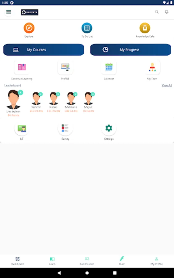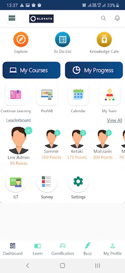 Elevate @ Khaitan & Co includes user-friendly navigation and customizable themes that let you make the learning experience truly your own. The digital learning experience of Elevate @ Khaitan & Co app goes beyond that of the average learning management system by making learning fun, through personalized, gamified learning pathways for individual learners. Learners can complete courses bundled as Mini missions, Missions and Boss Missions that earn them points, badges, memberships of exclusive clubs as per their levels and ranks on the Leaderboard.