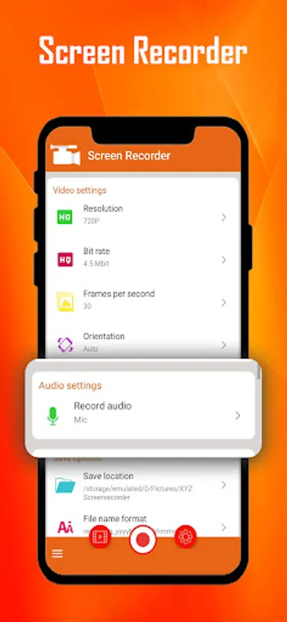 This screen recording app can be used as a game recorder because it supports many resolutions from HD, FullHD, 2K to 4K (4K screen recorder is only available to some users and devices). In addition, this screen video recorder app also supports different frame-rates: 24fps, 30fps, 60fpsβ¦