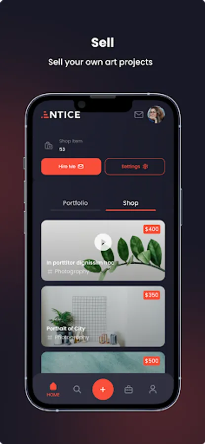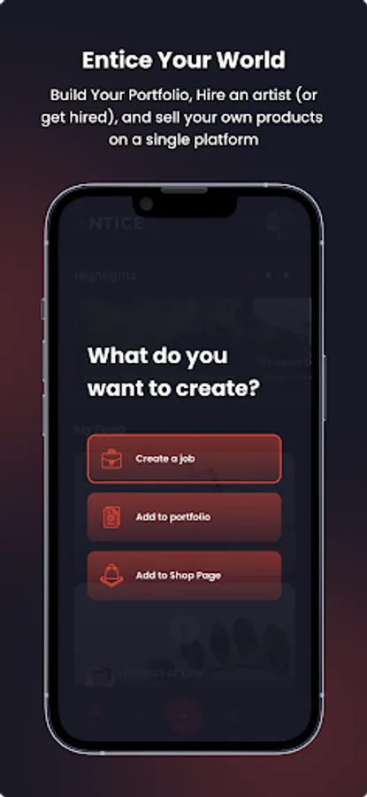 ENTICE is a creative empowerment community focused on connecting artists and creative people to economic opportunities. We are doing this by building a platform to find inspiration, build your portfolio of work, find your own job opportunities, and sell your own products all in a single space.