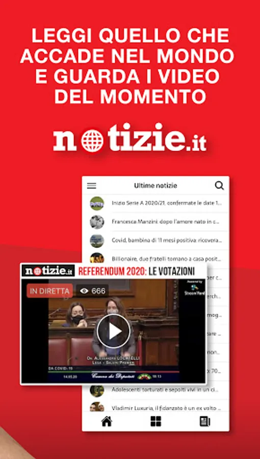 News.it is the great source of social information. Current affairs, politics, news, sports, television, gossip and all the news about your city now available via the app.