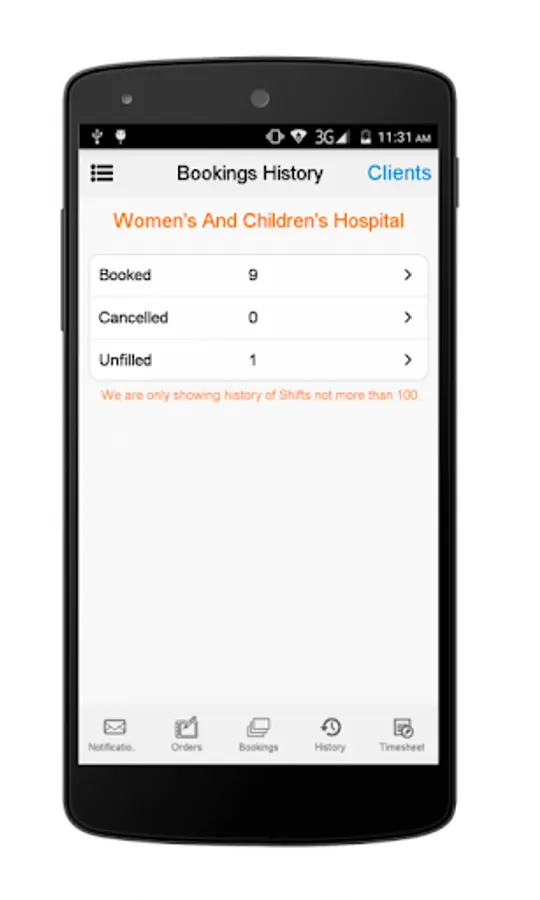 • History - provides a summary of all shifts ever ordered with the agency, including booked, cancelled and unfilled.
