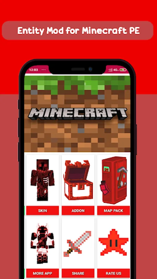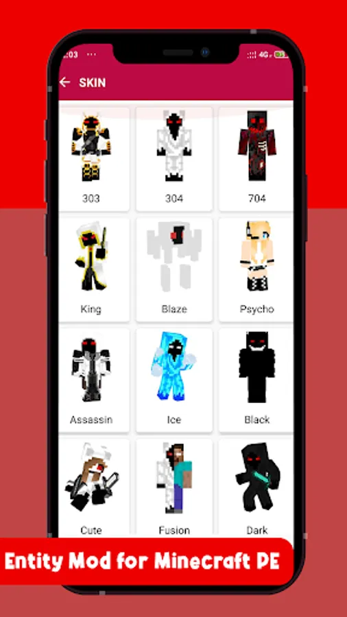 Entity Mod for Minecraft PE is super skin minecraft collection, you can easily browse your favorite character and install in one click!