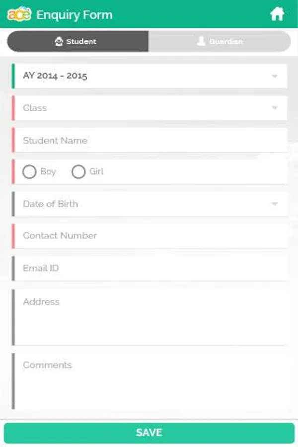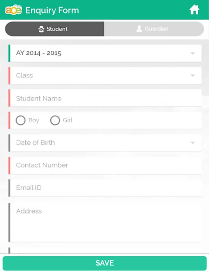 ace for front office executives to have parents directly enter their specific capture their specific details which will be saved as potential Enquiries, Applications in ace Enterprise Suite.