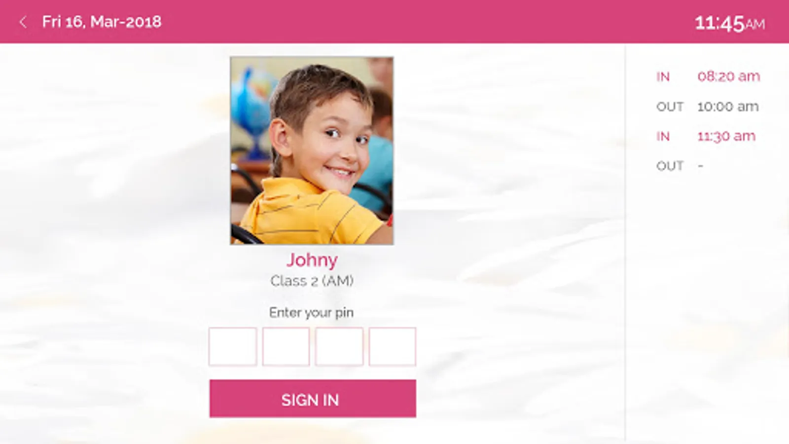 App helps school personnel & parents to capture sign in & out timings of a student with the help of unique PIN generated.