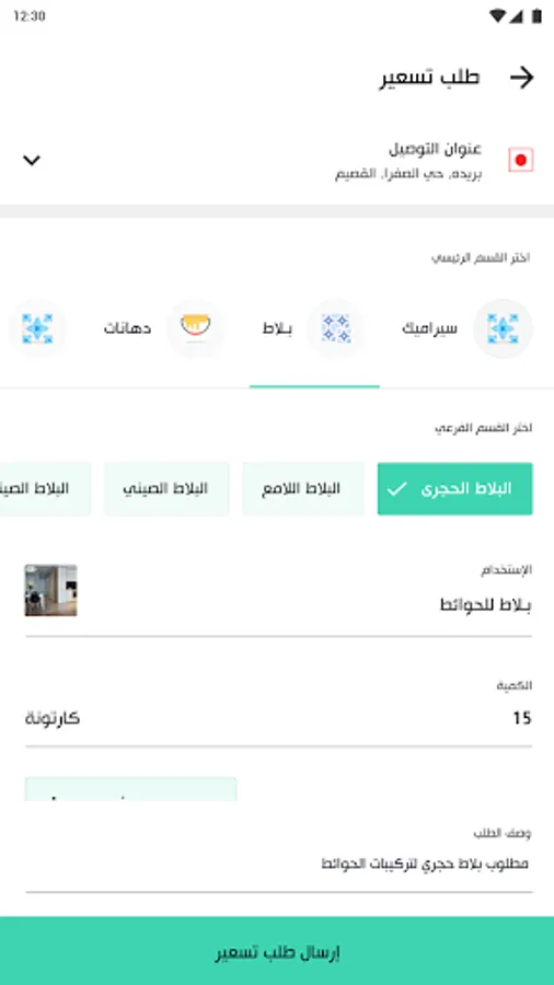 تطبيق خاص بشراء مواد البناء وعمل تسعيير للتشطيبات وطلب خدمات استشاريه او إنشائية