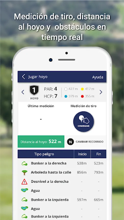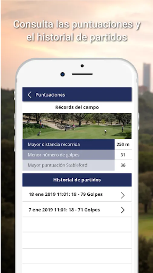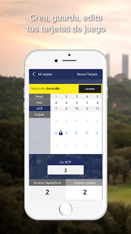 With this application you can access information of each hole with the comments made by a professional advising the best way to play, record the results allowing you to keep track of the strokes made and performed automatically calculating stableford points, store cards , edit and view the records (Maximum distance, least number of strokes and greater stableford score) and share it all with your friends.