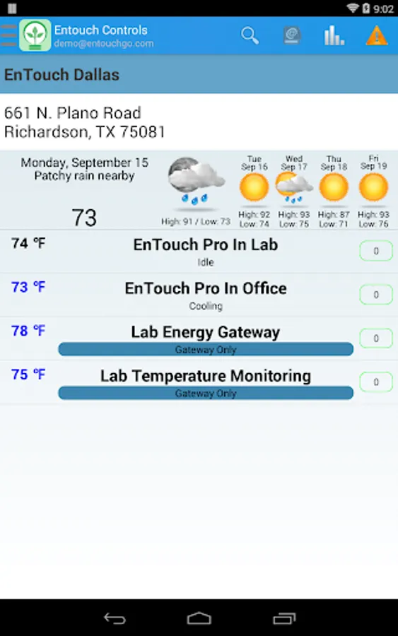 The Hill York Mobile app provides Hill York customers with the ability to remotely monitor and manage the HVAC settings for their facilities. Access to real-time HVAC information and historical graphical data is available through the app.
