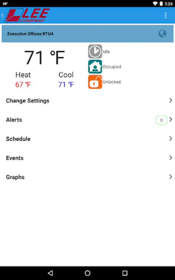 The LeeStat for Facilities app provides Lee Company commercial customers the ability to manage and monitor the settings for their facilities’ HVAC systems. Access to real-time HVAC information and historical graphs available through the app.