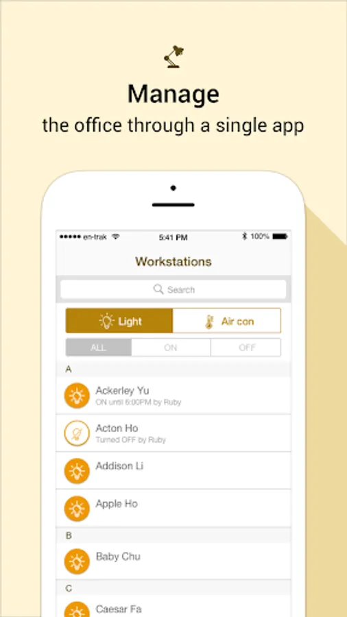 Simple and cost-effective, En-trak™ Smart Lighting allows you to wirelessly control their office lighting via any web-connected devices. Users can pre-set their lighting schedule to suit their operation hours - thus reducing energy wastage when lights are not in use.