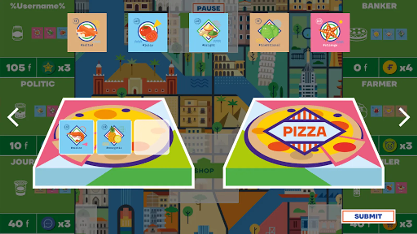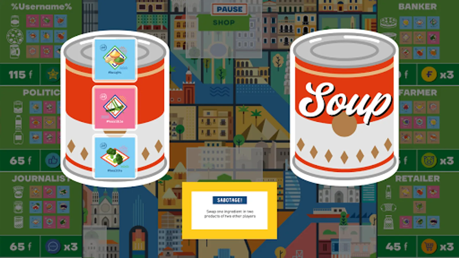 At the beginning of the game, you will receive 6 different ingredients, of which you will choose 3 to create your own unique food product!