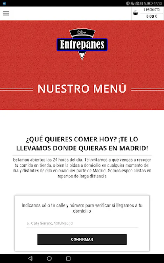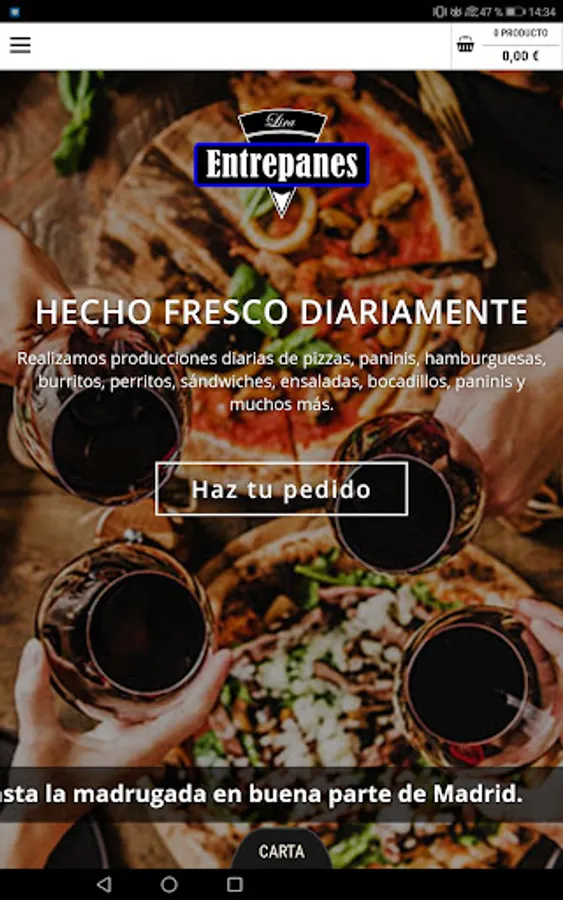 ENTREPANES 24 HOURS We invite you to come and collect your food in the store, or order it at home 24 hours a day and enjoy it anywhere in Madrid. We are specialists in long distance deliveries.