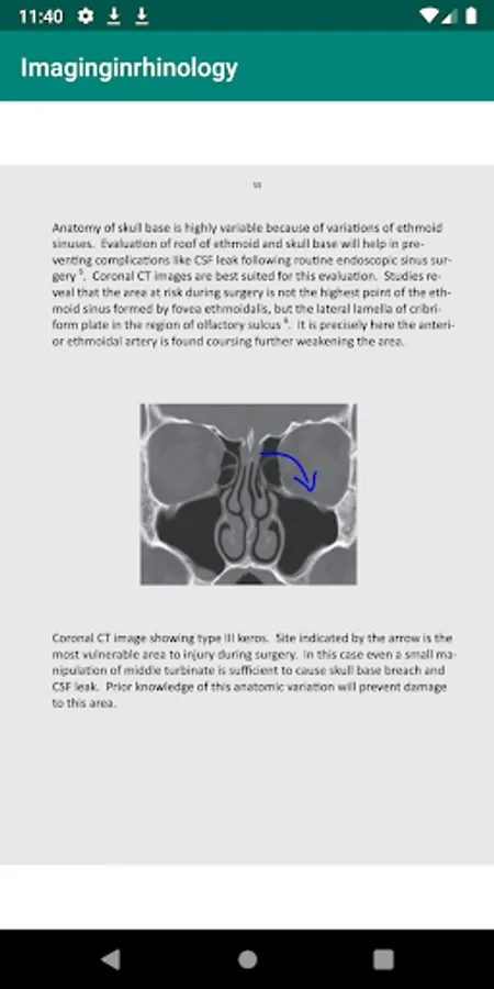 Success of otorhinologist depends on their ability to interpret radiological images. This app will definitely help them to fine tune their abilities in radiological diagnosis of disorders of nose and paranasal sinuses.
