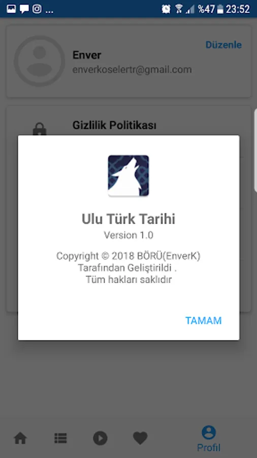 Our aim is to convey Turkish history to everybody, from young to old and old. In this application, children will learn their own Turkish mythology, learn their own Greek characters, not with the Greek mythology or the imaginary characters of the west. We tried to explain Turkish history with short articles. It is not only with Turkish history. Turkish news, Turkish Epics, Turkish Mythology, Hüseyin Nihal Atsız, Mustafa Kemal Atatürk, Turkish Central Asian History, Dede Korkut stories and Turkish culture are included.