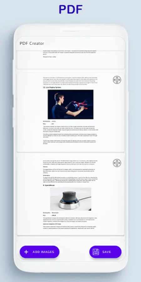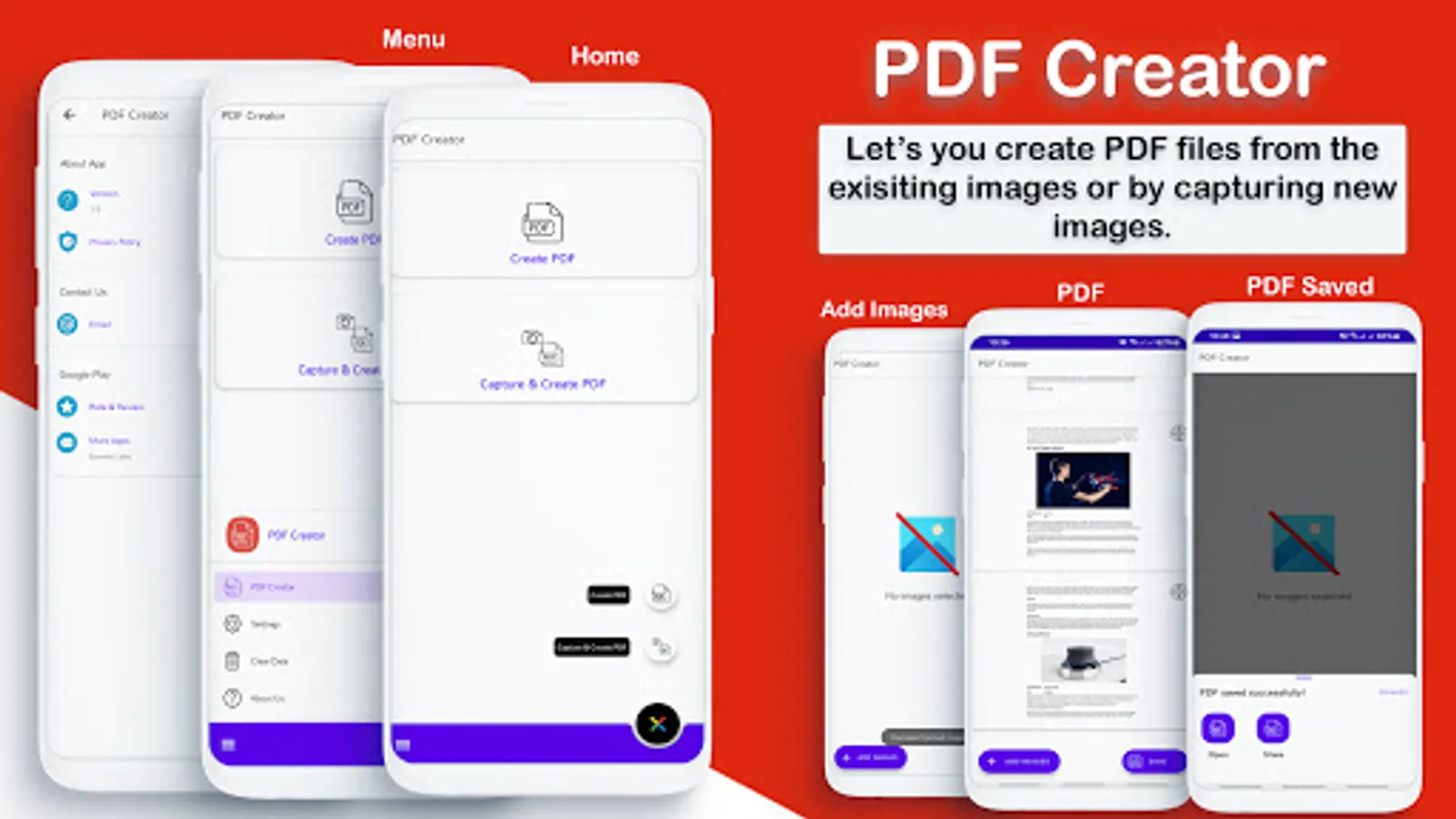 This is a simple PDF creator app that lets you create PDF from existing images or by capturing new images from phone camera.