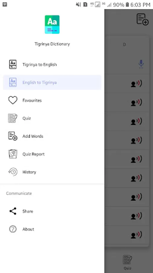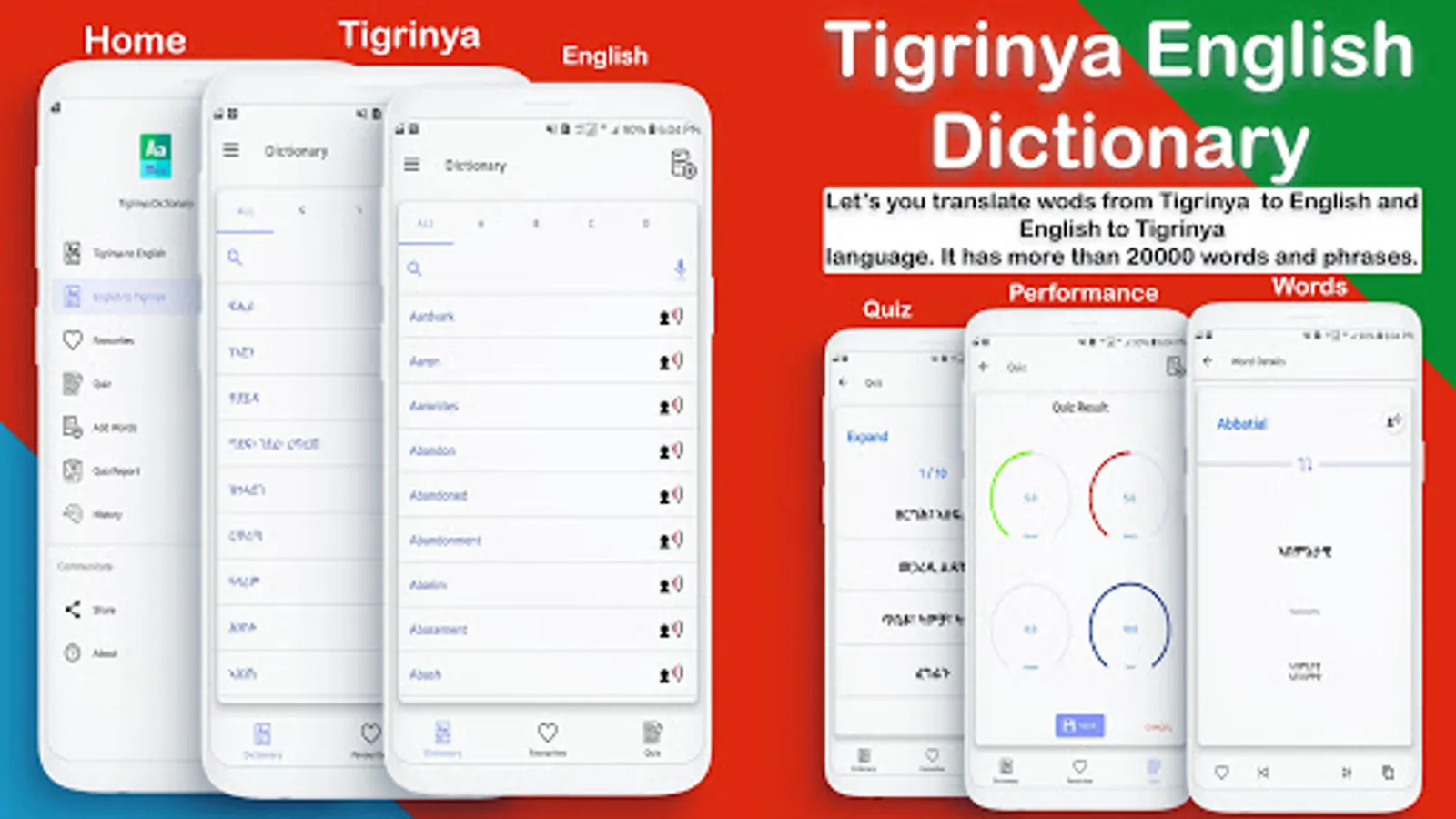 This app Help you to translate English to Tigrinya, Tigrigna and Tigrinya, Tigrigna to English language. Using this app you can search words, check synonyms and meanings in Tigrinya, Tigrigna and English. It includes All Tigrinya, Tigrigna Alphabets, Idioms, Phrases, Verb and Tenses.