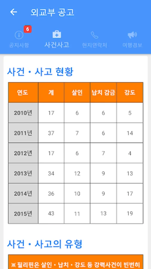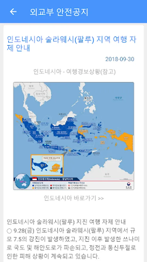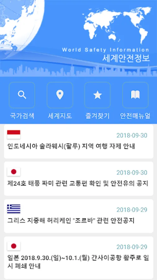- At the same time as opening the app, you can find out what kind of risks are present in any country in the world through Ministry of Foreign Affairs.
