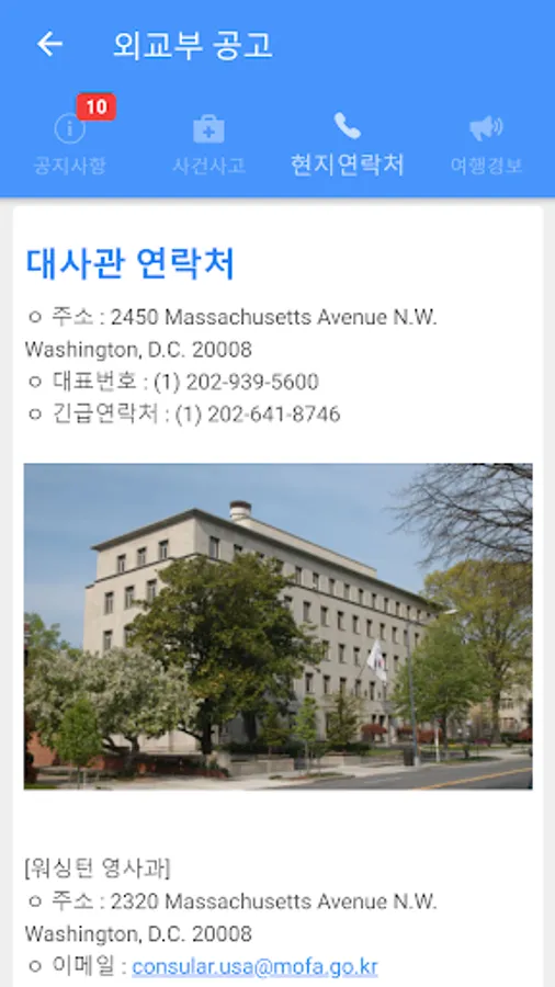 - For additional safety information, you can check safety notices, accident incidents, local embassy contacts, travel alarm images, etc. in your country through the 'More' button.