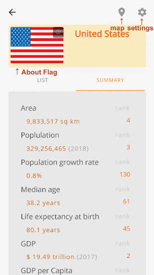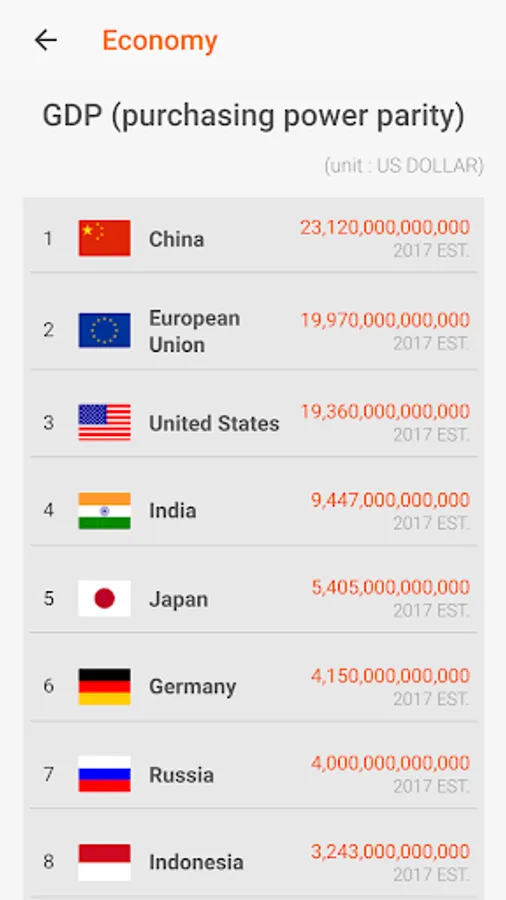 - In country comparisons include the most popular 12 items like Area, Population, GDP etc.