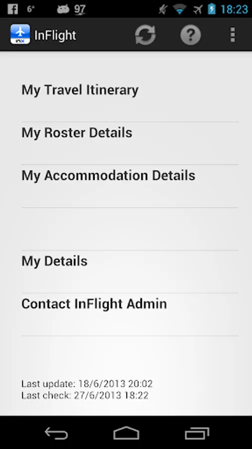 The INX InFlight App is designed to display travel, accommodation and roster information for one person's profile as captured within the InFlight database once the device is registered. The INX InFlight App (IMA) is will retrieve regular data from INX InFlight and display it on your mobile device. Should the device not have internet connectivity, the data from InFlight will still be displayed on the device.