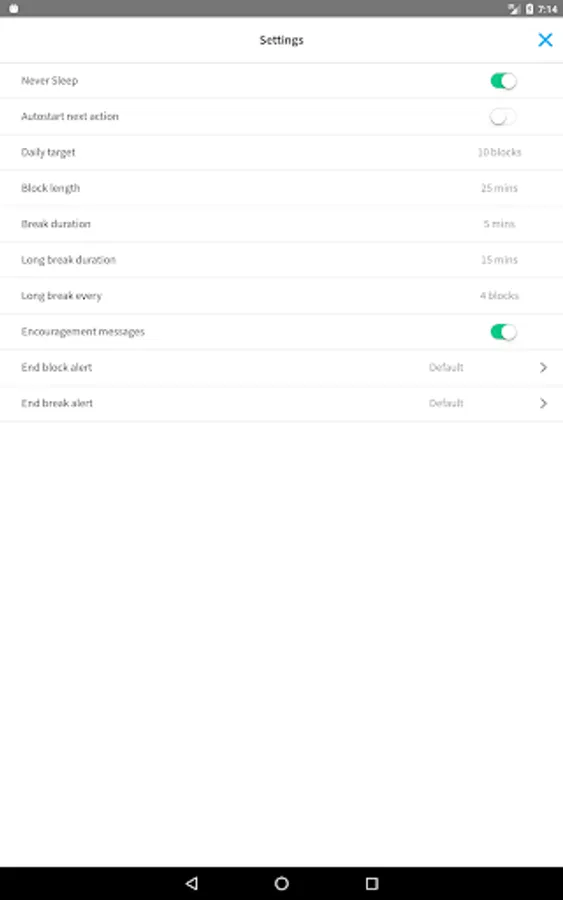 - Target block count & estimates: keep motivated with focus goals, set your personal daily targets.