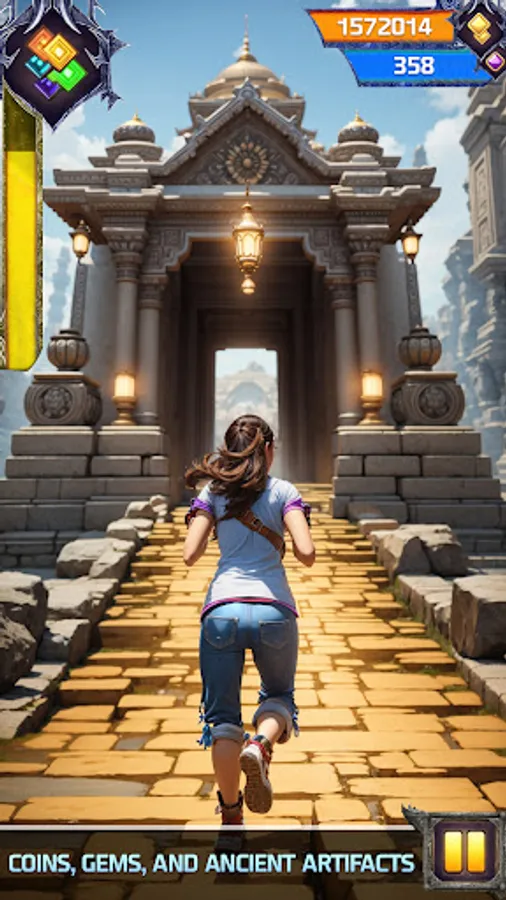 • Pick up different powers in temple game running to boost your performance in lost temple game run.