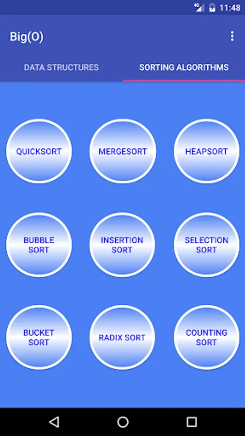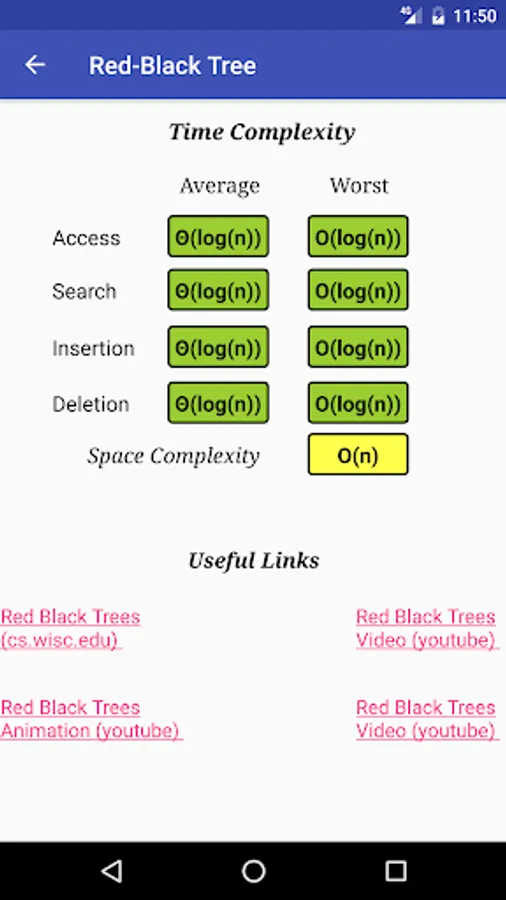 This app serves as a reference guide to space and time complexities of big O, which includes: