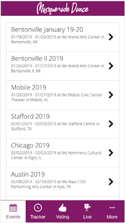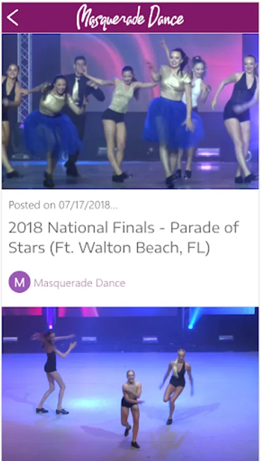 · Instagram and Facebook feeds, as well as access to the Masquerade Dance Website.