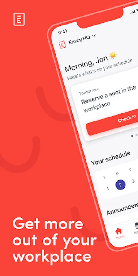 Make your workplace work better for you with Envoy. Coordinate your office schedule with coworkers, see where to go with workplace maps, reserve the perfect desk, book a nearby conference room, invite visitors, get notified about packages, report workplace issues, and more.