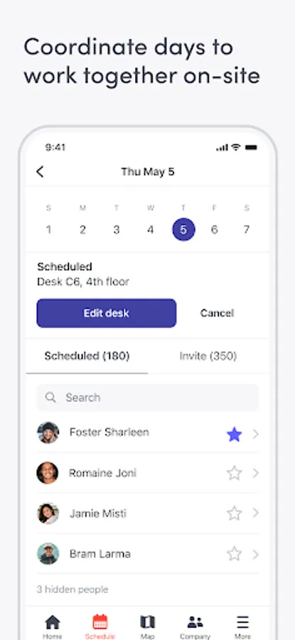 Set your schedule for hybrid work. Easily see who plans to work onsite each day so you can plan to be there too. Invite coworkers to join you in person for collaborative work.