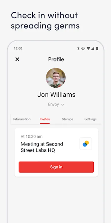 Get cleared to work onsite by submitting proof of vaccination or completing a health check. Once you arrive, reduce the spread of germs with a touchless sign-in using the Envoy mobile app.