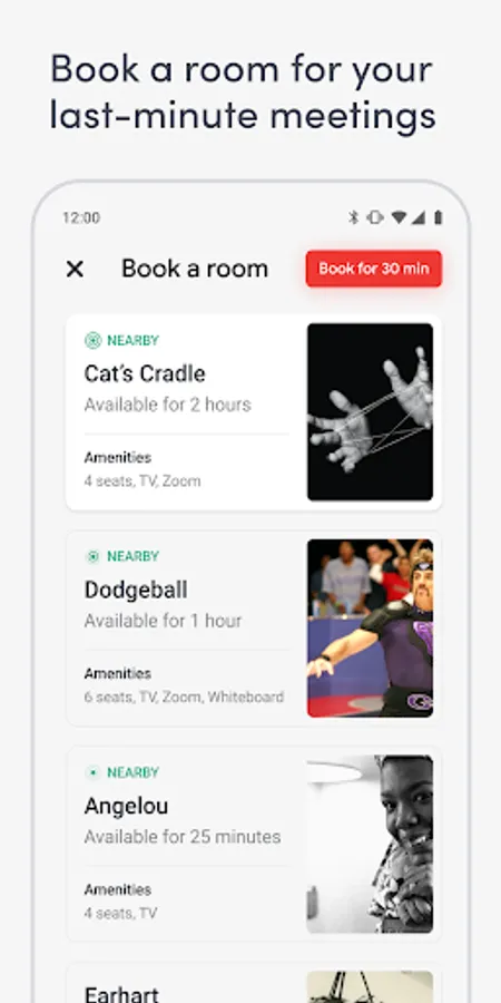 Easily find the closest available meeting room on the interactive workplace map, so you can book a space, even when you’re on the go. Check in to your next meeting right from your phone, or free up the room for someone else.