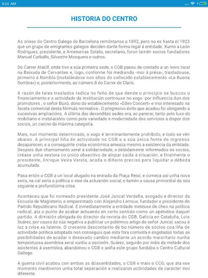 As oryxes do Centro Galego de Barcelona remóntanse to 1892, but it was not until 1923 that a group of galegos migrants decide to Entidade darlle legally. Xunto Leon Rodriguez, president, and Ameixeiras Sotelo, Secretary, foron Tamen founding partners Manuel Carballo, Silvestre Mosquera and outros.