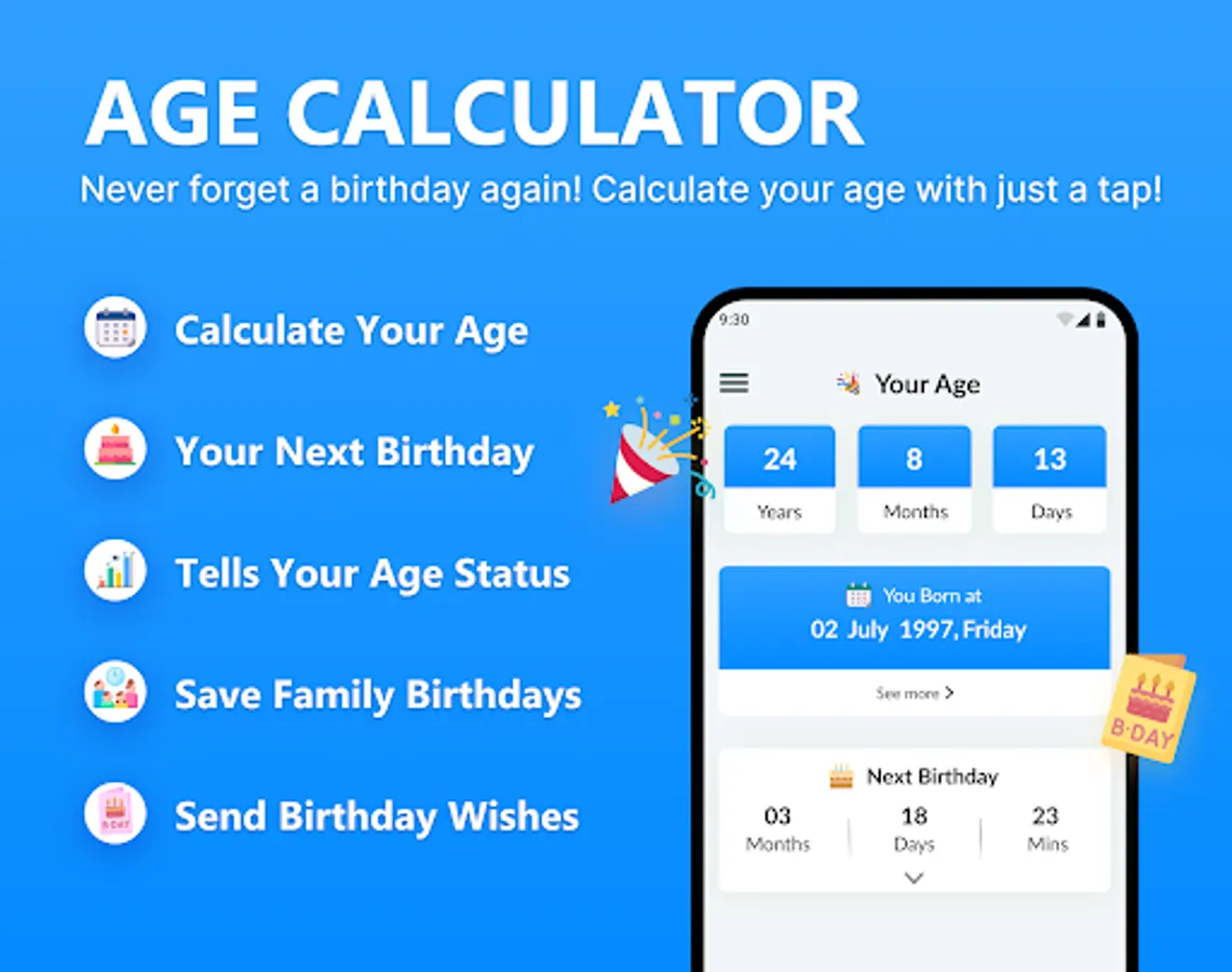 There is a rush of age finder app and birthday tracker in the market. But this Free Age Calculator gives you the most excellent experience of age tracker and date counter. Moreover, birthday reminder will help you to never forget the birthdays of your loved ones, friends, and family member. Because this chronological age calculator contains an accurate working birthday countdown.