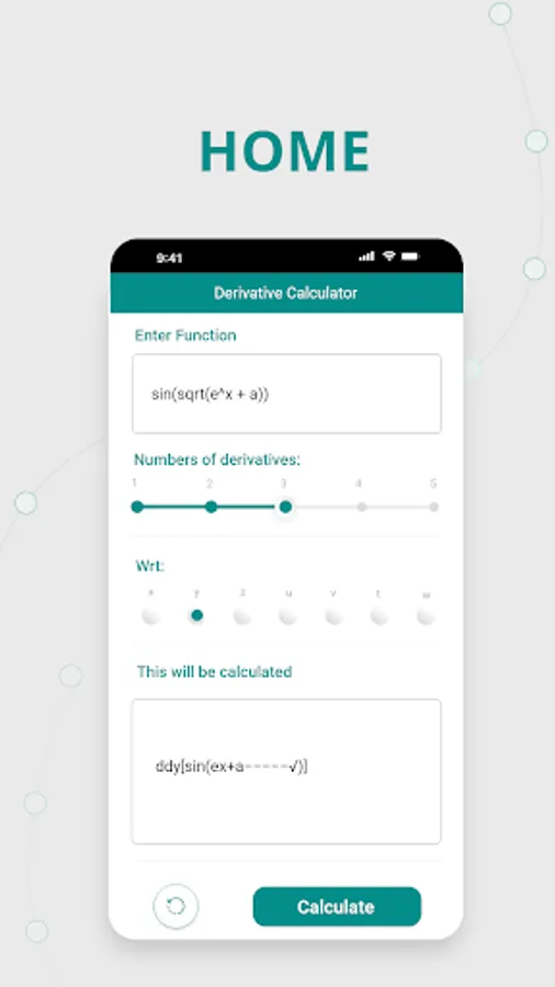 You can differentiate the same function for first, second, third, fourth, and fifth Derivatives. All you have to do is enter the number in the labeled box of Derivative.