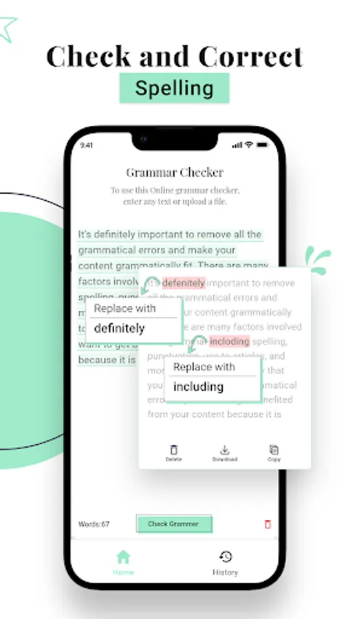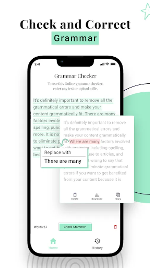 This Grammar Checker App makes quick proofreading of English Grammar and mistakes in spelling, highlights errors, and provides suitable suggestions to correct grammar.