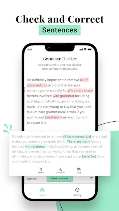 • Download Files: Once corrections of grammar and spell check have been applied to the content. There is no need to copy-paste it to the source document. You can directly download it to your smart android device with one click.