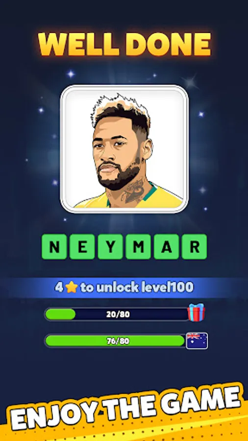 "Football Trivia! Football Guessing" is more than just a simple game of guessing players and teams; it connects football fans. Relive unforgettable World Cup moments and discover hidden football stories. Enjoy this game with your family. Whether you're looking for a relaxing way to while away the hours or want to delve deeper into the world of football, this game is a great choice.