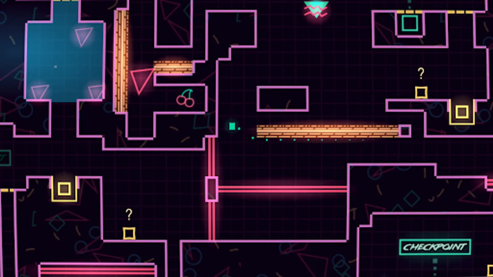 Inspired by 90s arcades, the Big NEON Tower is one giant level broken up into large single-screen sections. Each obstacle has been meticulously placed. Each section devilishly designed. It will take patience and skill to navigate the maze-like tower. Precision is key to success!