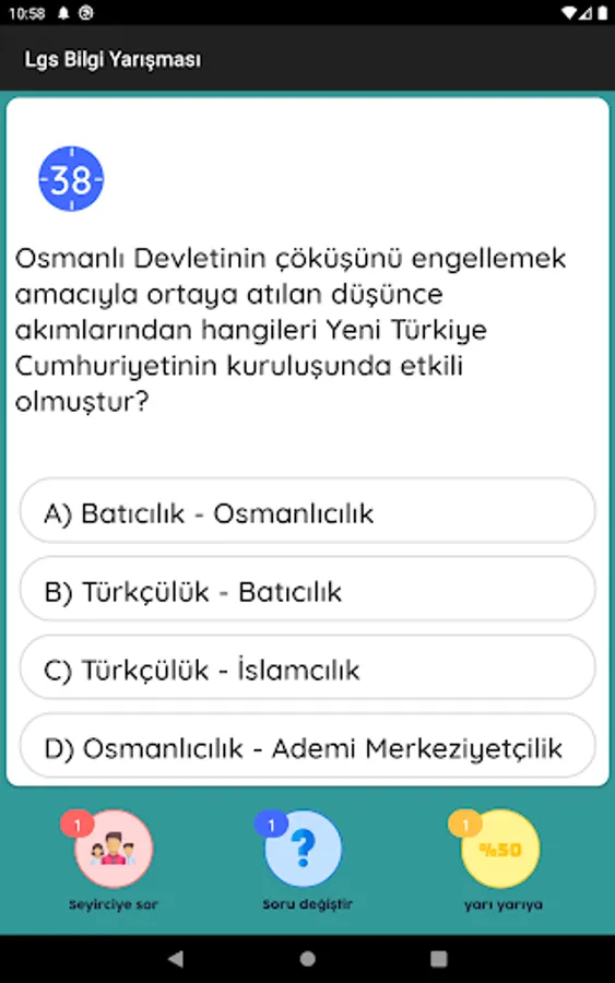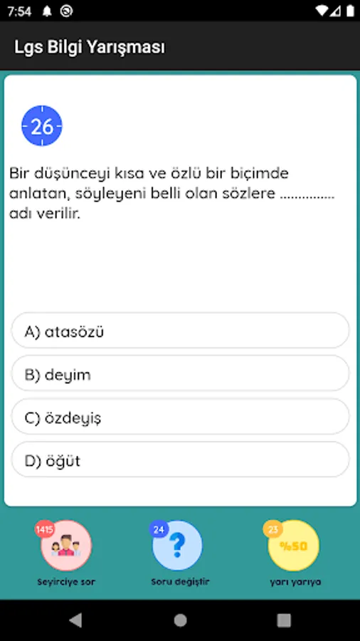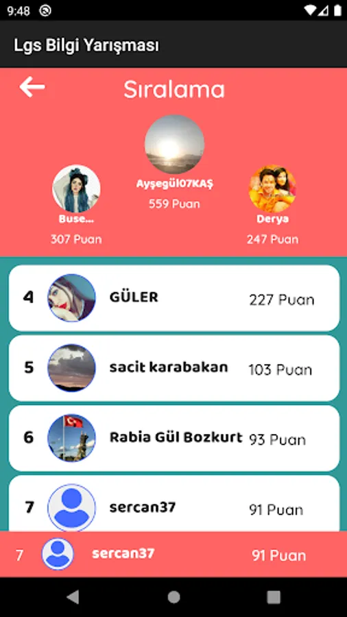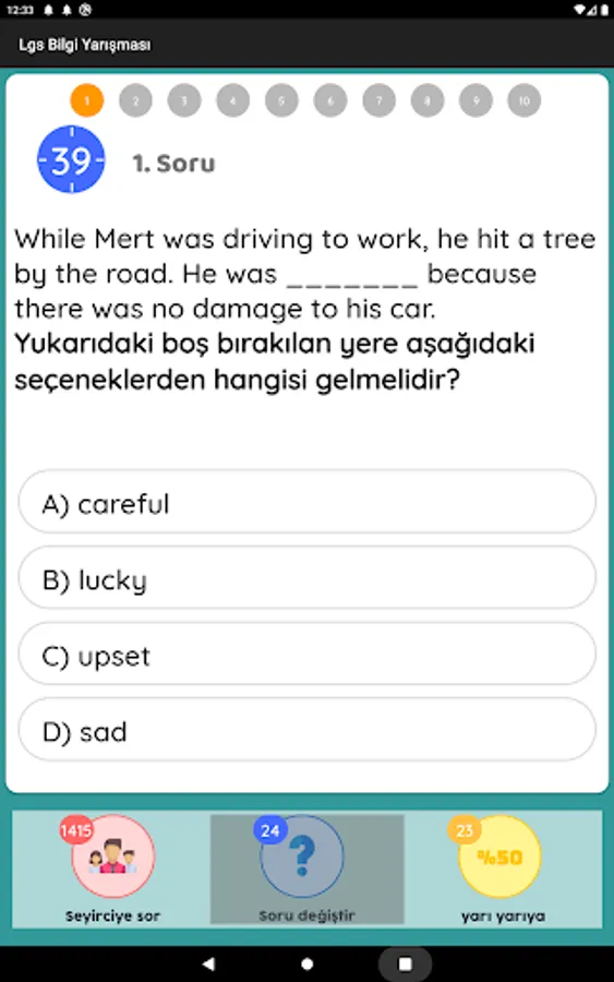 8. Download our quiz game, which is completely free and specially prepared for class Lgs students, now and start competing with your friends. The questions in the quiz consist entirely of the courses (Turkish, Mathematics, Science, History of Revolution and Kemalism, English and Religious Culture) that are questions in the Lgs Exam. You can have the chance to prepare for the exam while having fun with the application. 8. Unlike all classes applications, you can earn points by solving tests and go up in the rankings. You can prepare for the lgs exam by having fun.