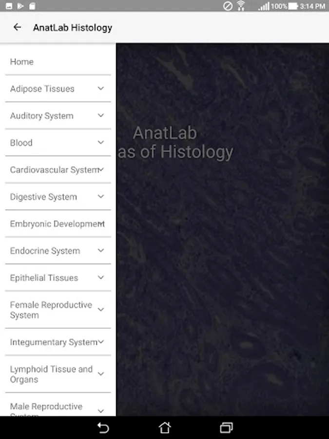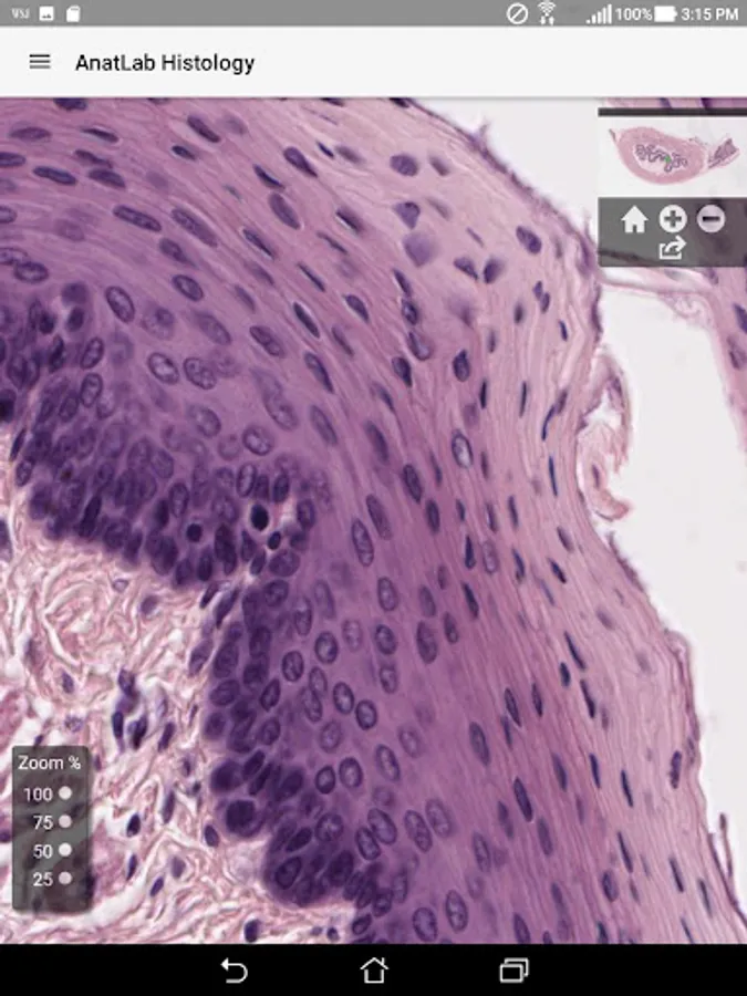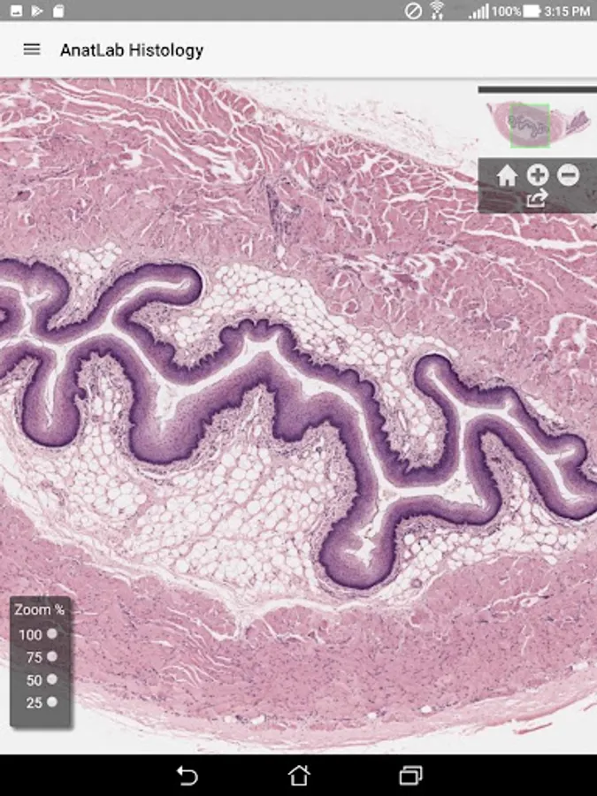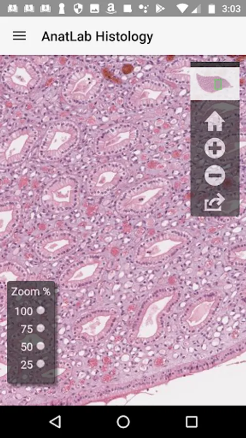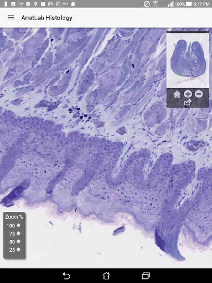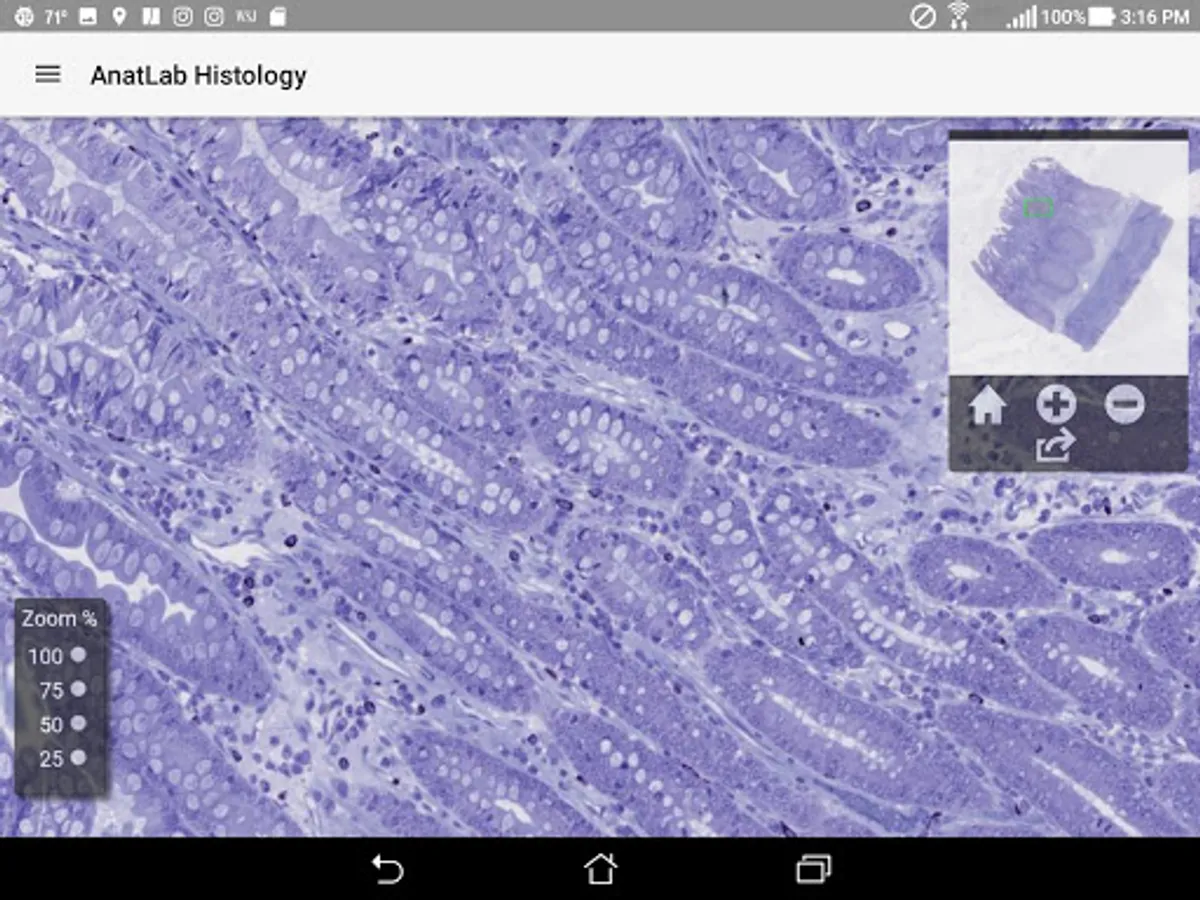 The AnatLab Histology Atlas app provides mobile access to a complete collection of ultra-high-resolution histology microscopic slide images. This system allows students, teachers, researchers, and the general public to explore the complete microscopic landscape of the body as if they were looking at a collection of actual slides on a physical microscope, all through the cloud via their Android mobile devices.