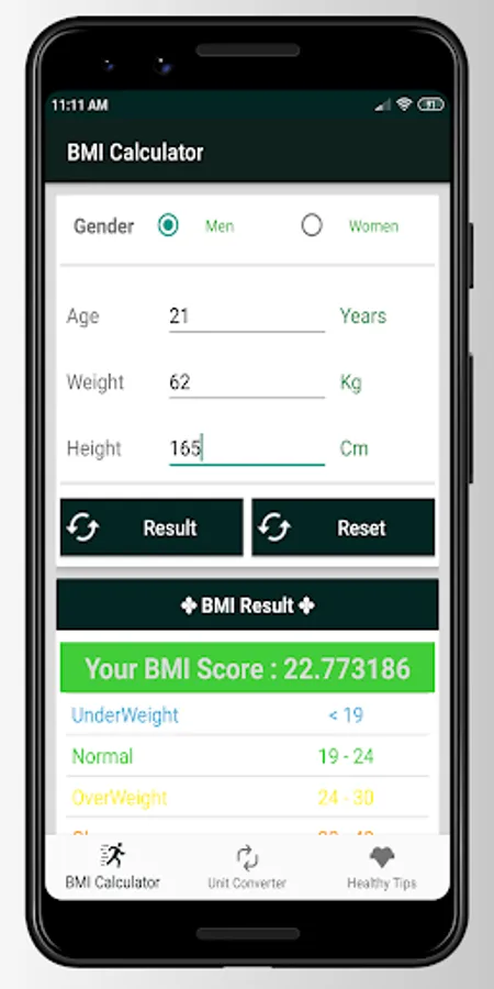 BMI Calculator - Weight Loss & BMR Calculator is the app which allows user to calculate their Body Mass Index and BMR Index in one app. It provides the accurate measurement based on the weight and height provided by user along with age.