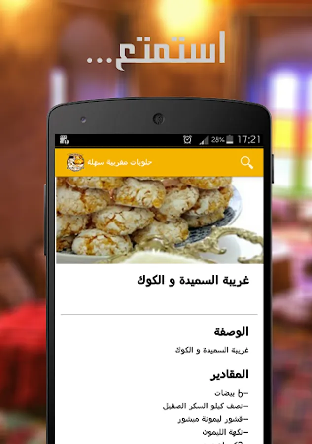 Eid sweets and Shahyoat Ramadan and events, these sweets Amorbh easy. You will find in this application through which you can reach the latest recipes and feast of Ramadan and d'Oise Atay and Shahyoat Moroccan Hmich.