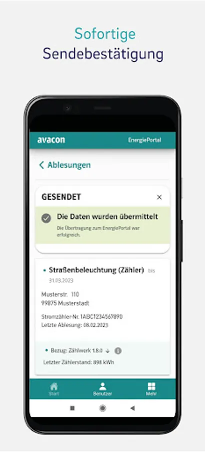 With the app you can easily read meter readings with your mobile phone camera or enter them manually in the app. You will immediately receive a confirmation that your data has been sent successfully.