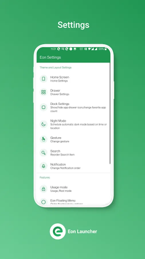 - Eon launcher provides users with the option to customize a menu to fit fav