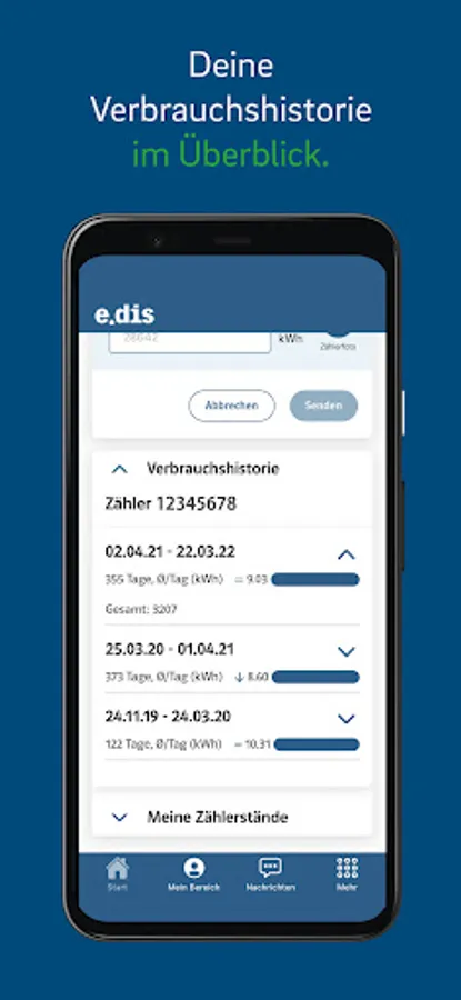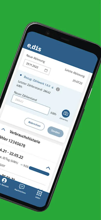 With the app you can record the required meter reading. You will then receive a confirmation by e-mail in a few minutes.