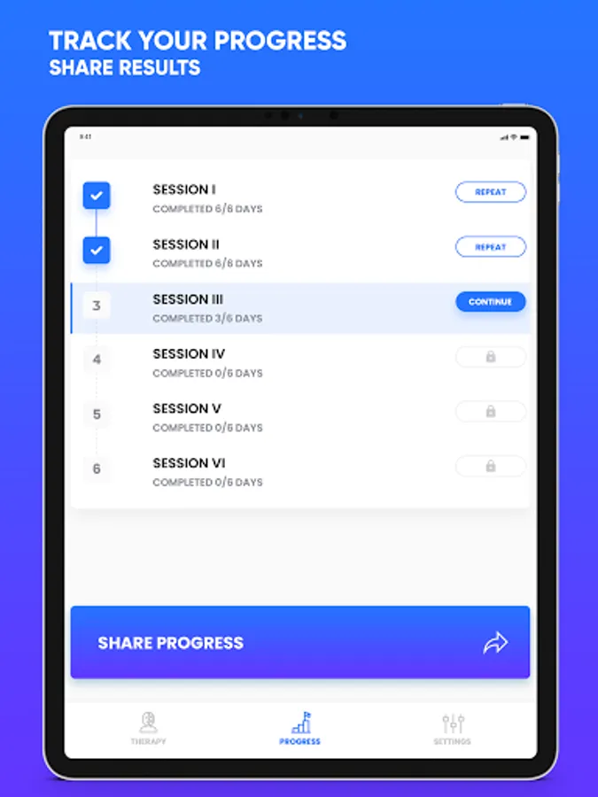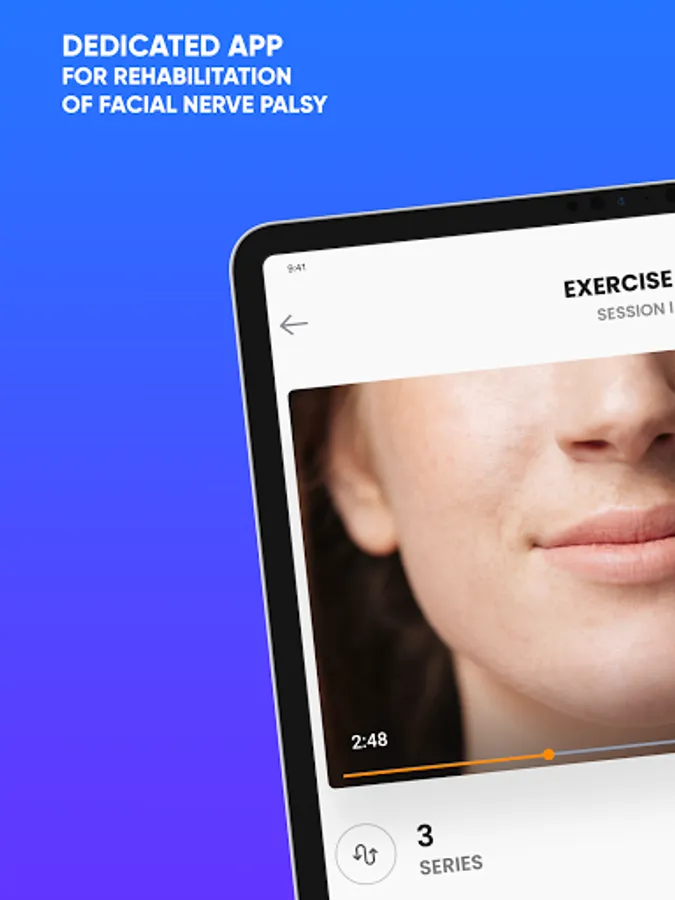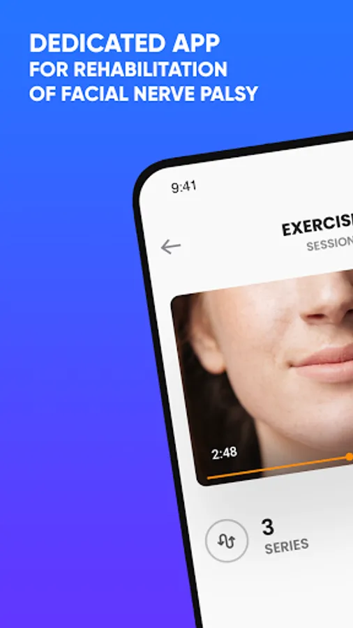 Our App offers assistance in remote therapy of the facial nerve through special sessions prepared by professional physiotherapists and physiotherapists. The App already has a lot of knowledge and information about the disease, indications and contraindications. You can share your progress with your doctor.