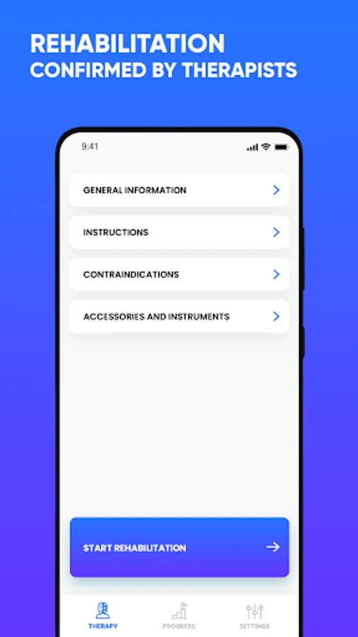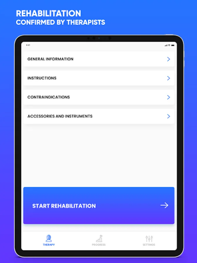 Each exercise in individual sessions has carefully adjusted series and the number of repetitions so that the exercises are performed with high accuracy. Each exercise is presented in the form of an instructional video in which the exercises are explained in detail step by step. Thanks to this, your home rehabilitation will be easier.