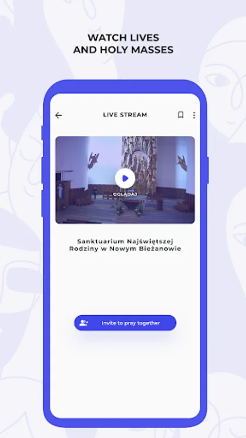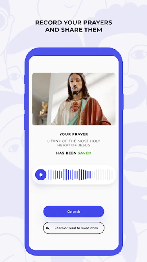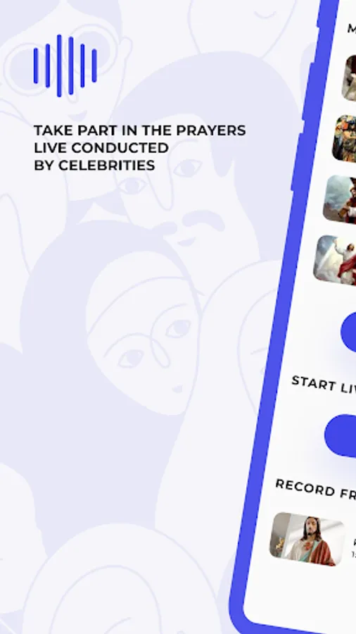 In the app you can record your prayers and share them with your friends. If you have a YouTube account, you can also use the app to share your video or broadcast live to selected friends.