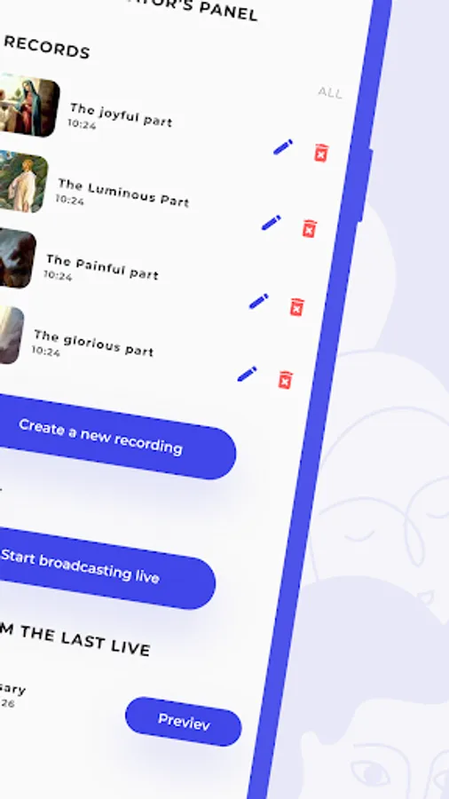In the app, we have made a special creator's panel in which, as a user and a Celebrity, you can manage the content of your profile, edit and delete recordings, and invite your loved ones.